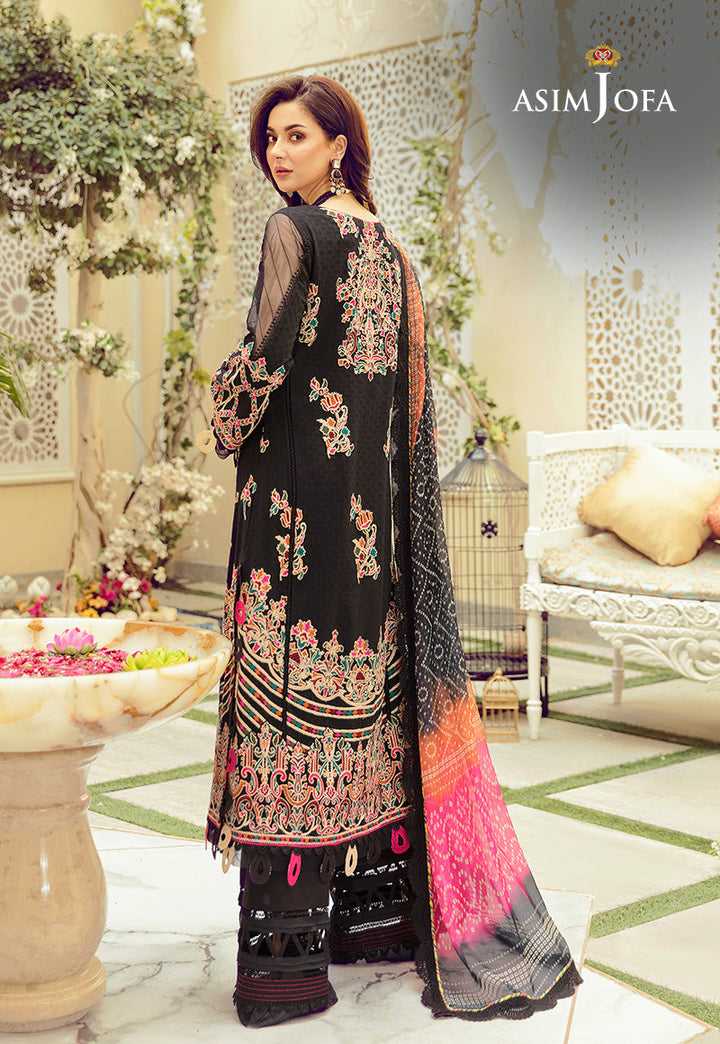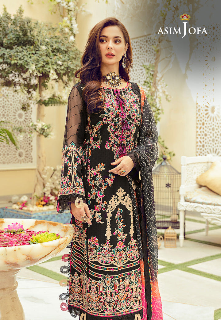 A kaleidoscope of colors embroidered against a black self jacquard backdrop. Taking inspiration from our traditional handicrafts this design employs aari stitch which is executed to perfection. The colorful threads create an interesting visage of a crafty look. The silk dupatta adheres to the traditional bandhni pattern providing an aptly fitting coordinate for this lushly embroidered design. Paired with dyed cotton pants. Combine it with tribal jewelry or any chunky stuff to accessorize and voila you are ready to go.