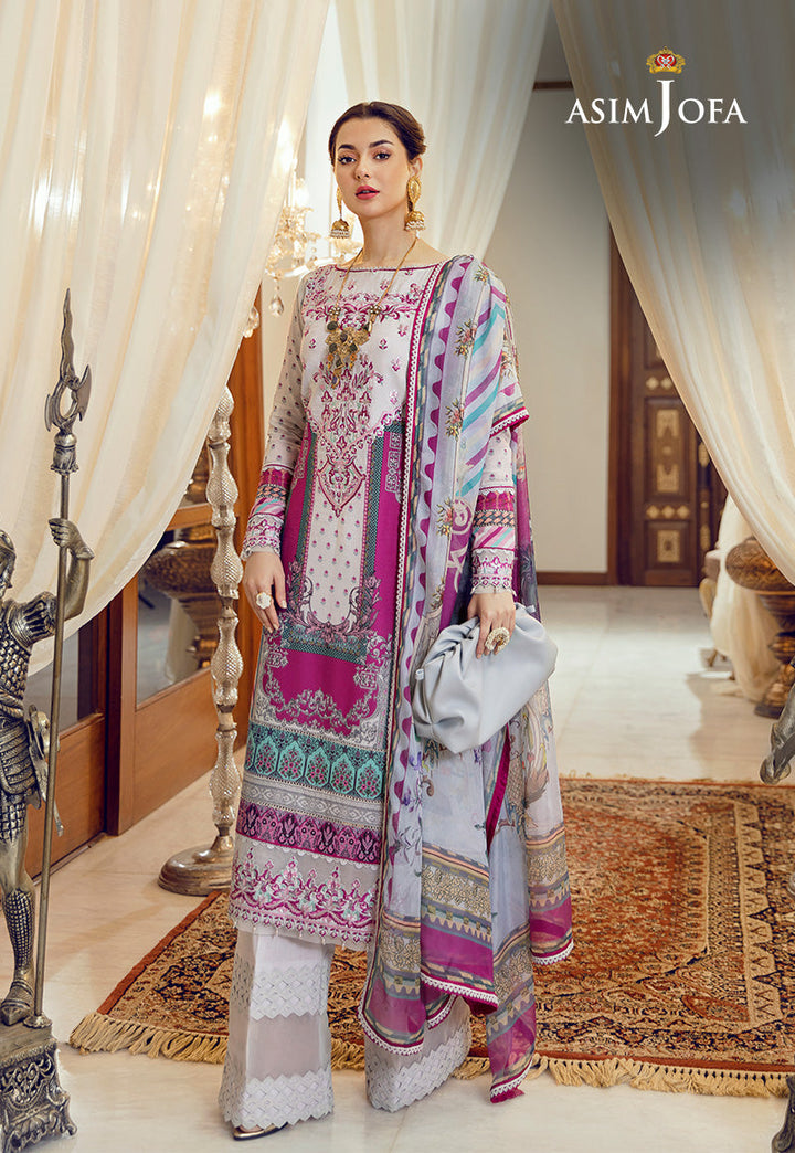 On hot summer days adorn yourself in this cool icy gray and magenta ensemble, with delicate embroidery on the neckline and endings. A diagonal line pattern in the print creates an interesting illusion which complements the color scheme and accentuates the form. This design comes with a printed silken dupatta and solid cotton pants. Pair it with funky earrings and you are set to embrace any summer outing.