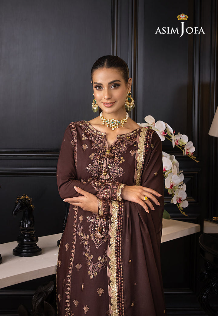 Journey through the pages of regality with this dark brown ensemble. An interplay of brown and mocha threads, kissed by gold sequins and antique zari, crafts a tale as old as time. The embroidered dupatta is the final chapter in this saga of splendor.