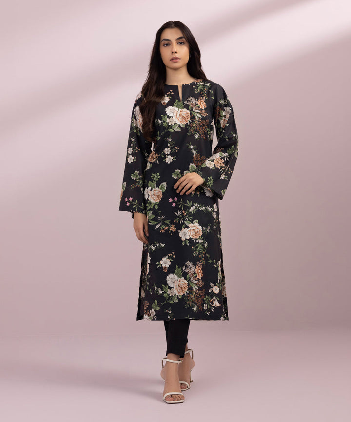 Printed Front, Printed Back, Full Sleeves, Round Neckline with a slit