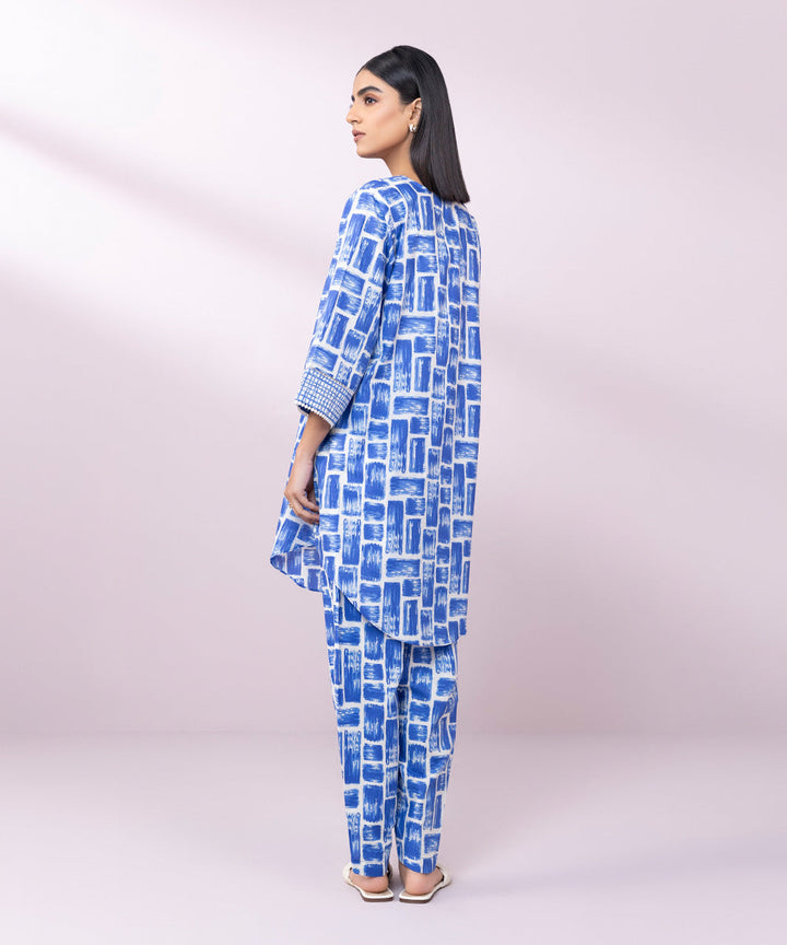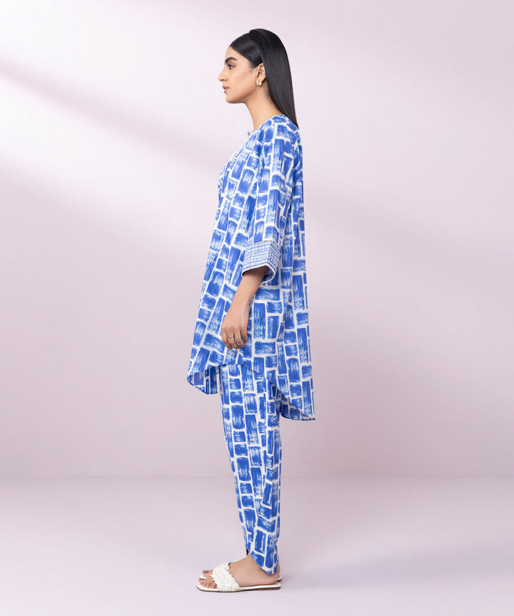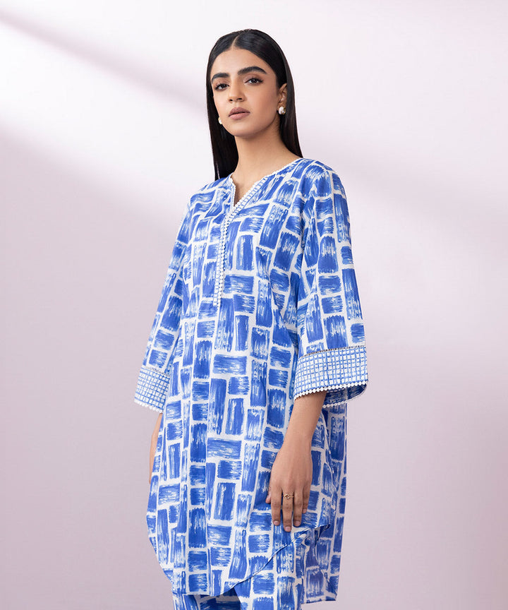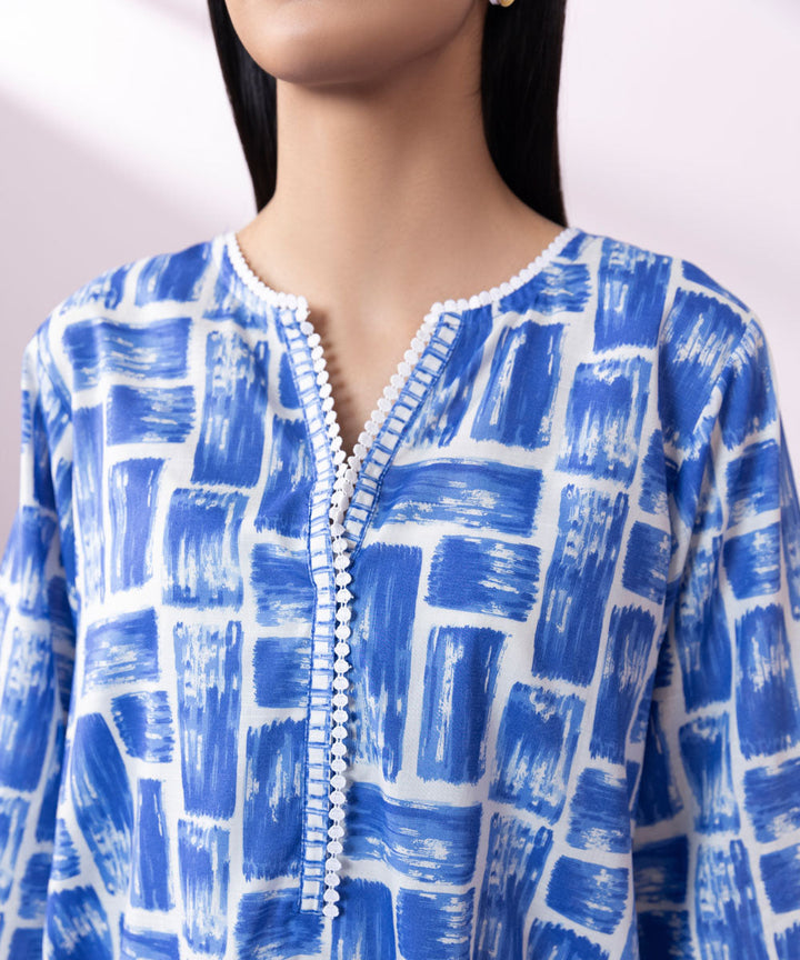 Printed Front with Lace, Printed Back, Full Sleeves, Round Neckline with a placket