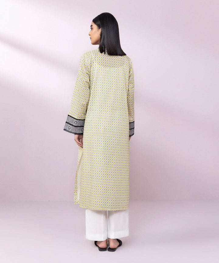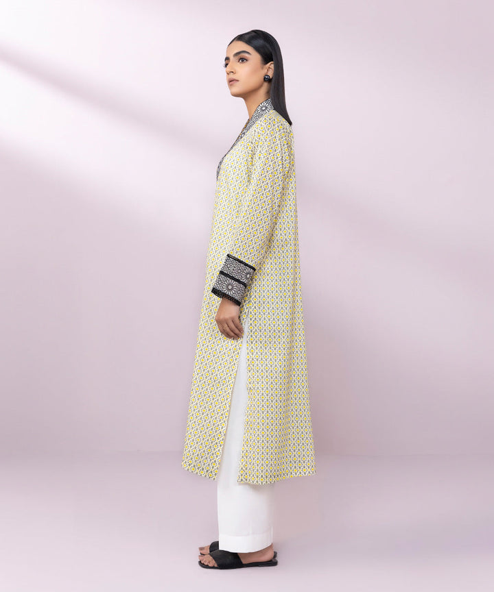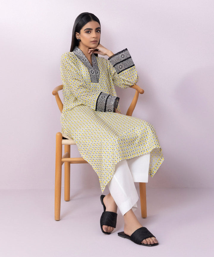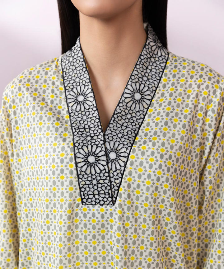 Printed Front with Embroidery, Printed Back, Full Sleeves, V Neckline