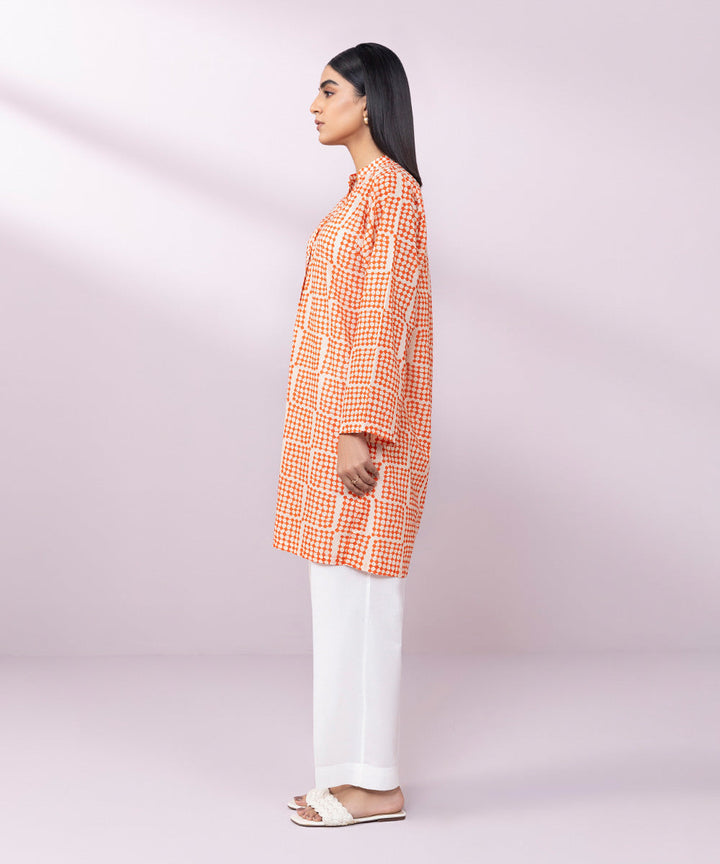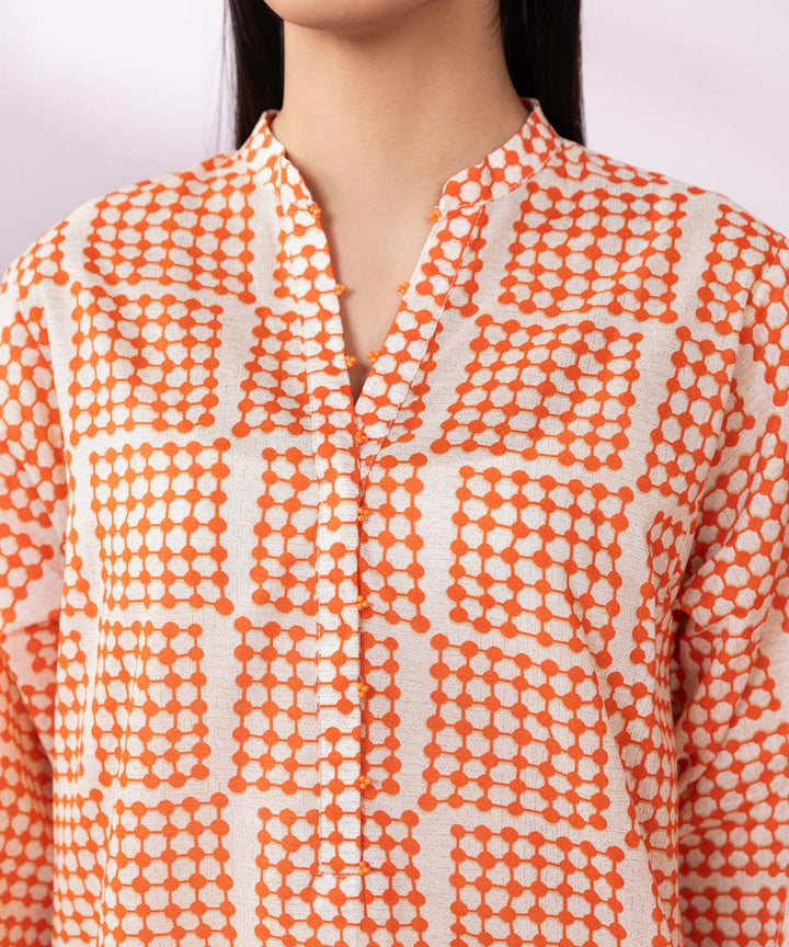 Printed Front, Printed Back, Full Sleeves, Band Neckline with a placket