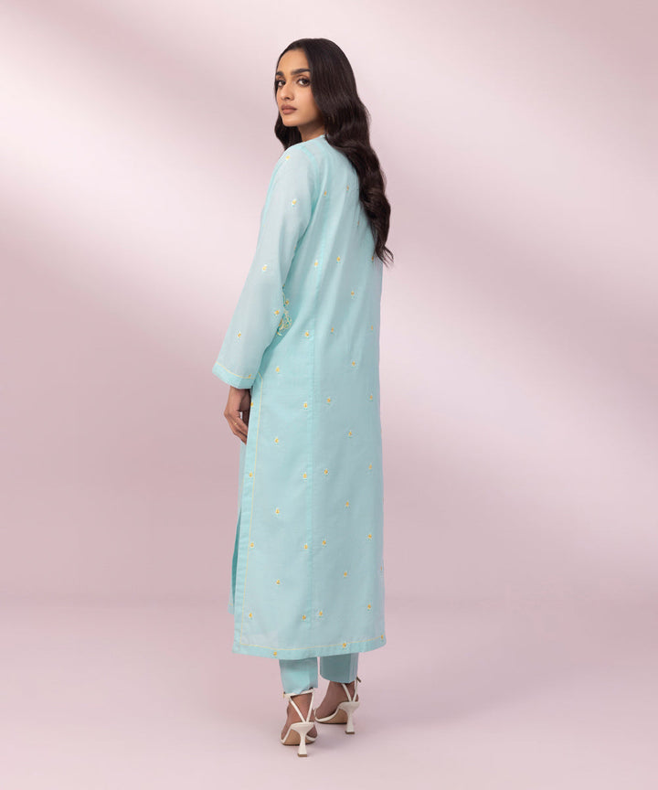 Dyed Front with Embroidery, Dyed Back with Embroidery, Full Sleeves, Crew Neckline with a slit