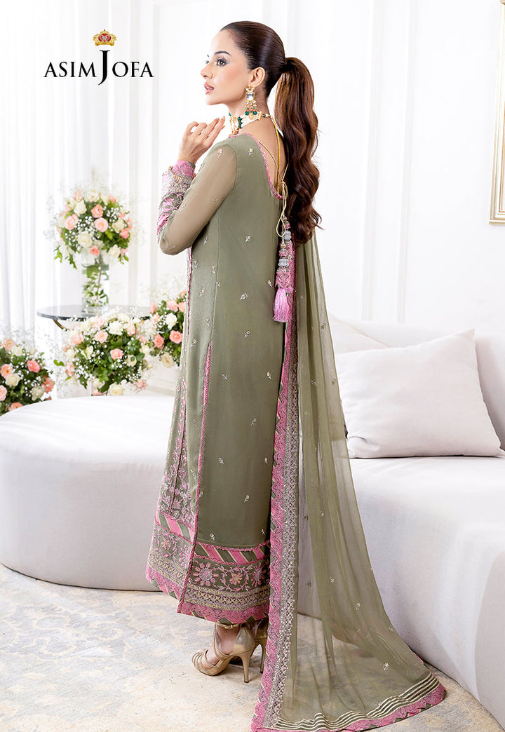 Experience the beauty of a blooming garden with this olive-green shade outfit adorned with intricate pink embroidery and blossoming garden. The subtle olive-green hue symbolizes harmony and balance, while the delicate pink embroidery adds a pop of color and femininity. Inspired by the enchanting natural beauty and grace of plants, the intricate motifs capture the essence of natural beauty and grace. With its timeless design and botanical allure, this ensemble from the 'Jhilmil Collection' is a testament to the everlasting elegance of floral inspiration.