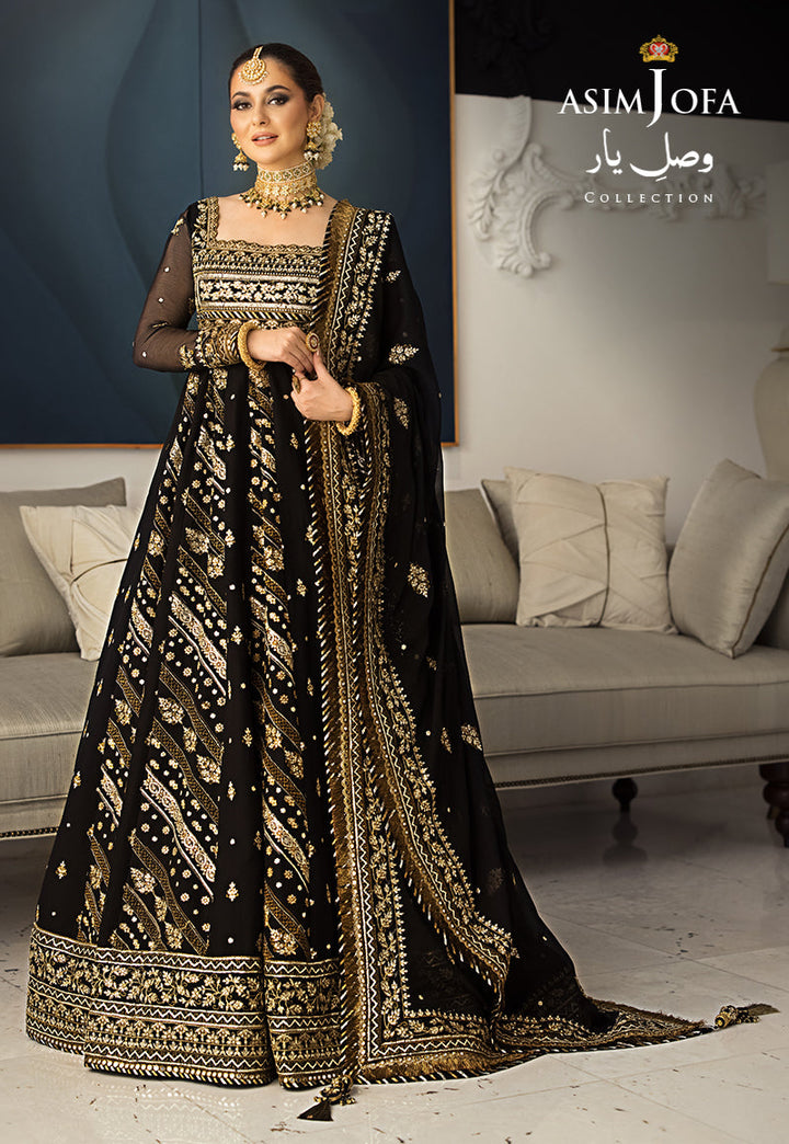 Embark on a journey of captivating charm with our Midnight Elegance ensemble from the “VASL-E-YAAR” collection. Crafted with meticulous artistry, this outfit features an intricately embroidered bodice on luxurious chiffon. Unleash your regal aura as you wear this mesmerizing piece. The embroidered peshwas add a graceful flow, accentuating your every move. Embrace the allure of the night and radiate sophistication like never before.