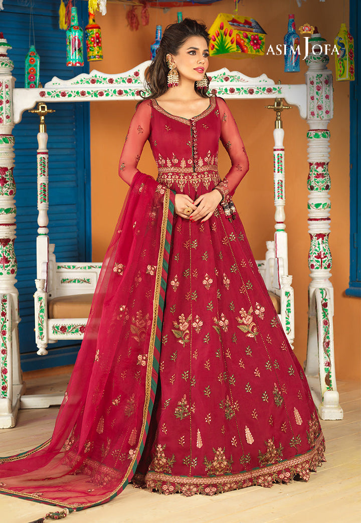A cherry red peshwas is a royal yet elegant full length gown. This ensemble comes with beautiful gold details making it look magnificent. Fine quality thread-work is further triggering the classy look. Skillfully crafted hemline is adding depth to the overall soulful attire. Matching dupatta completes the overall magnificent look and makes this dress even more luxurious to style on any special day.
