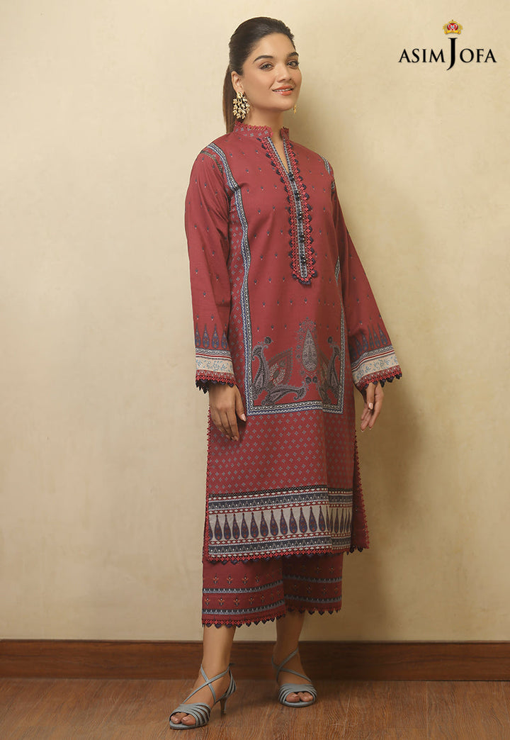 Barn red printed straight shirt with a printed culottes styled with laces and embellishments