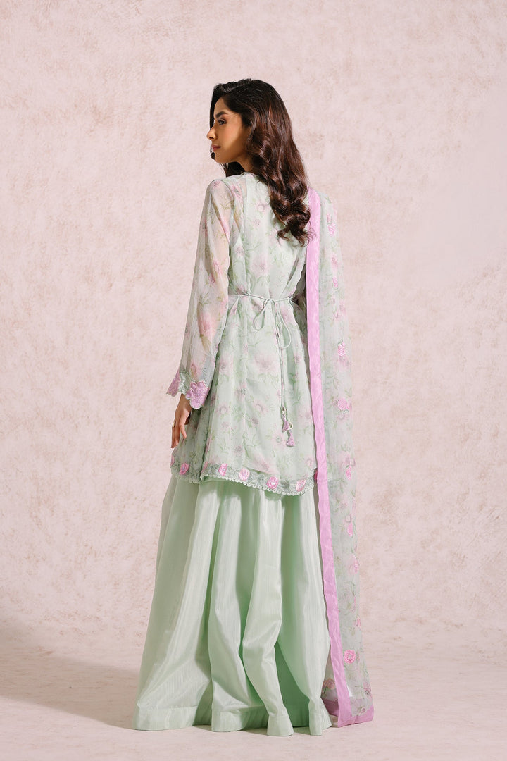 -Fabric: Poly Crinkle Chiffon (Shirt + Dupatta) & Slub Filament (Slip & Sharara)