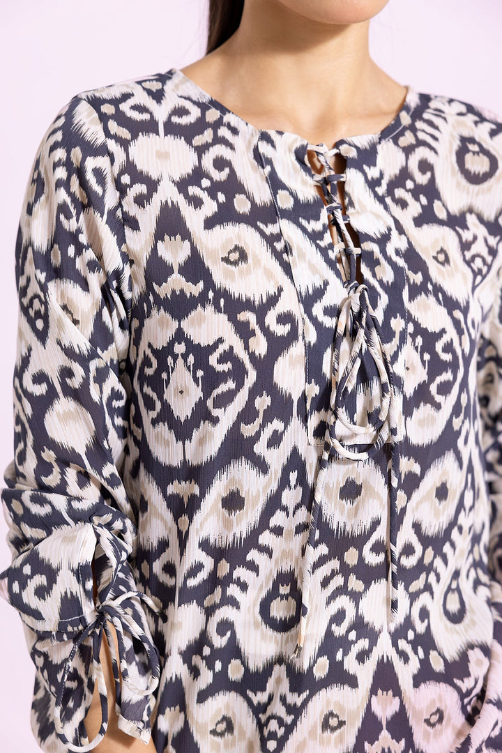 This trendy outfit is a graceful, elegant addition to your wardrobe that will instantly add a contemporary touch. The deep black shirt is highlighted by captivating pattern printed in light shades, making it perfect for this party season. Enjoy a gorgeous look and stylish feel with this design.